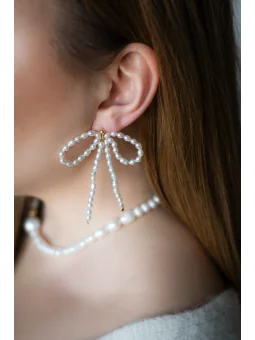 Kolczyki BRIDGERTON to niezwykle oryginalna propozycja długich kokard wykonanych z pereł.
