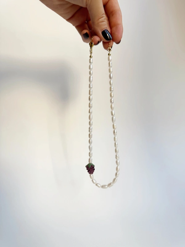 Połączenie naturalnych pereł i szklanego koralika w postaci owocu jeżyny przywołuje pachnące latem chwile i pozwoli Ci poczuć się niezwykle świeżo i dziewczęco.
