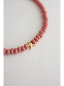 Różowy choker z lawy wulkanicznej z przekładką rozgwiazdą.