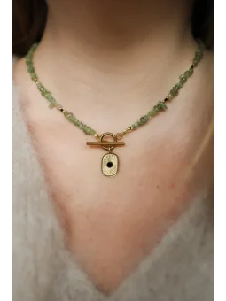 Oliwkowy choker z apatytu w oliwkowym odcieniu zieleni, ma w sobie charakter vintage i wyjątkowości nadają mu czarny turmalin oraz elementy w kolorze złota.